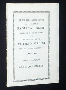 Zambelli Lodovico. ai nobilissimi sposi signora paolina uggeri ed il signor conte rutilio calini cantata pastorale di lodovico zambelli