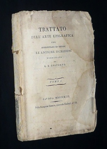 Spotorno. trattato dell'arte epigrafica per interpretare ed imitare le antiche iscrizioni solo primo volume