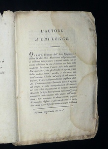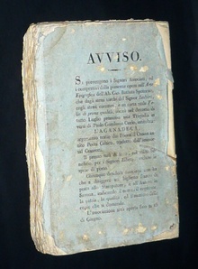 | Altre informazioni | cm 15x22--VOLUME ESTRENAMENTE COME IN IMMAGINI--mancano la copertina le carte bianche e presenta una mancanza al frontespizio--l'alone visibile al frontespizio si ripercuote--man mano scomparendo fino a pag 15--il resto si presenta in ottimo stato di consevazione senza il seppur minimo apporto esterno--.Nel secondo volume mancante si tratta "la via d'imitare con lode nelle moderne iscrizione l'aureo stile delle antiche"--indice ed errata nel secondo volume |